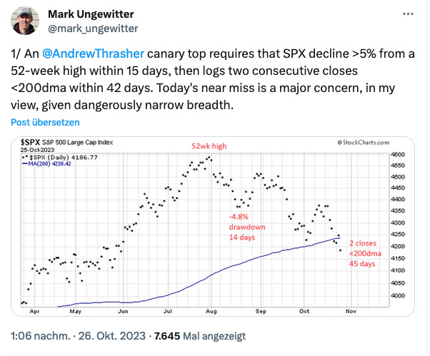 What we got in August was a dip of 4.8%; and we have now breached the 200-day moving average in two months and four days. Which led for example Mark Ungewitter to post: