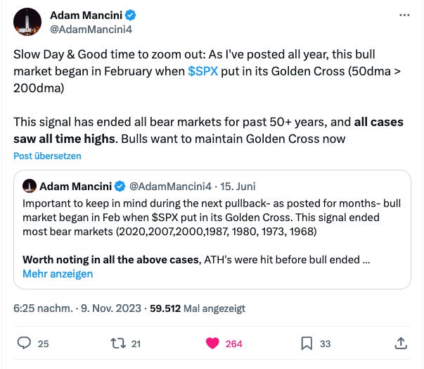 However: “(the Golden Cross) has ended all bear markets for past 50+ years, and in all cases saw all time highs”?