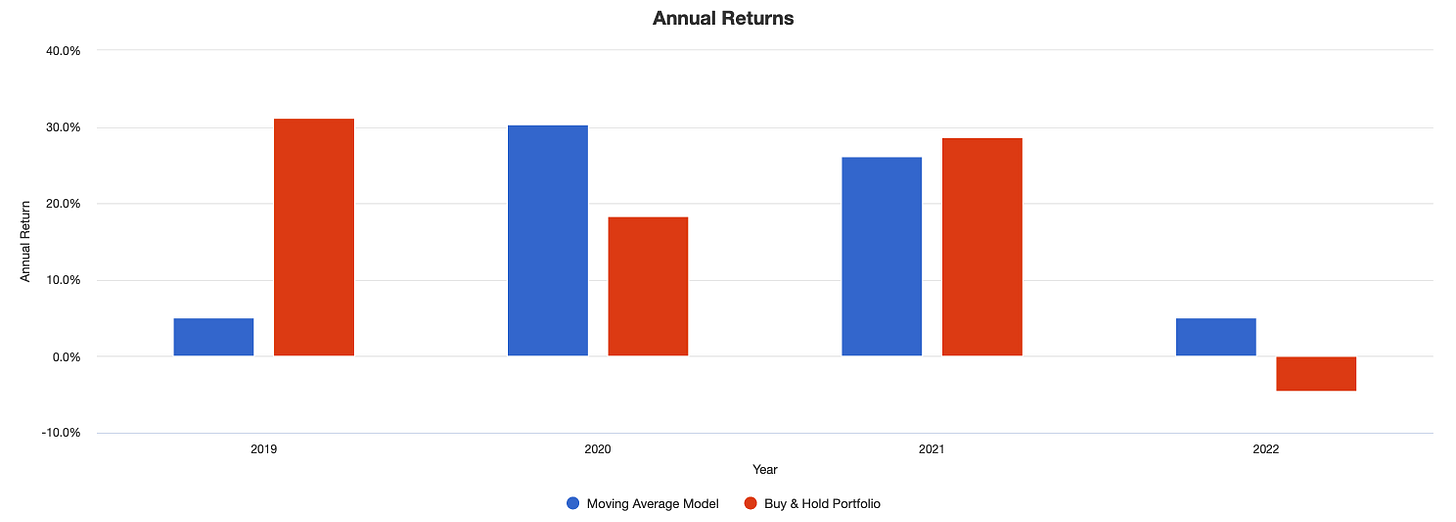 And in November 2021, the signal went risk-off — again, a pretty prescient call. We’ve been out of the market ever since.